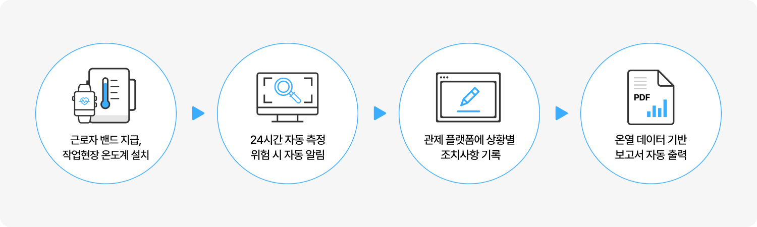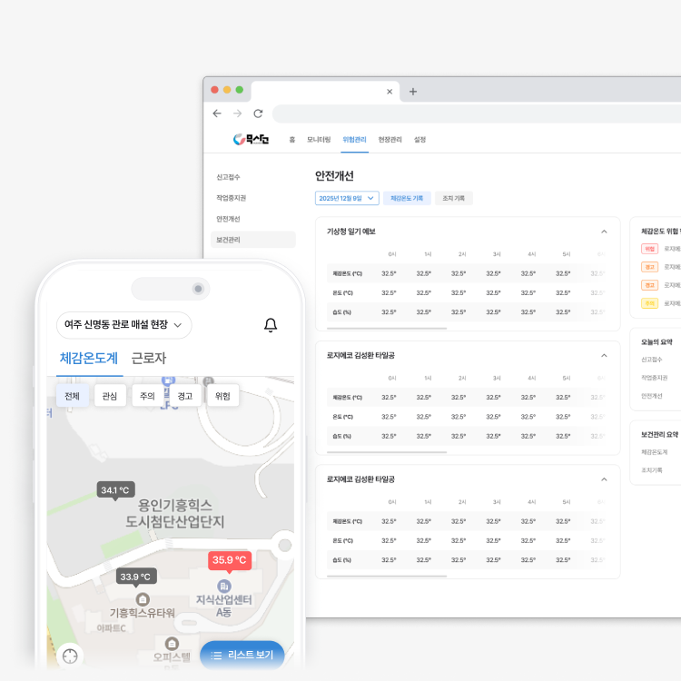 모니터링할 수있고, 누적된 데이터는 온열 보고서에 연동되어 자동 생성됩니다.